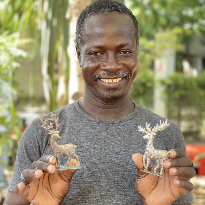 One of the most celebrated Haitian art forms, steel drum art is always a winner! Each piece is hand crafted from recycled 55 gallon drums using only a hammer and a few small tools that resemble railroad spikes. Each piece is a true work of art!